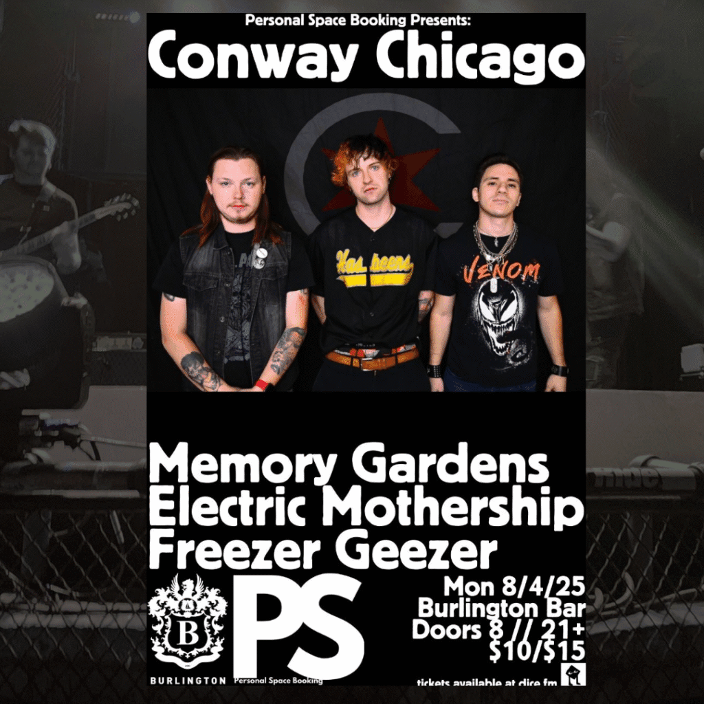 Conway Chicago’s live shows are known for their raw energy and emotional intensity. At The Burlington, an intimate venue that perfectly complements their sound, fans can expect: